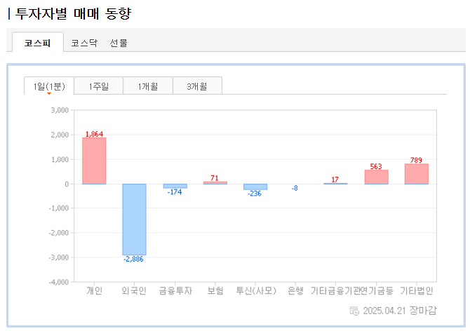 외국인 투자자들은 최근 지속적으로 한국 주식을 매도하고 있으며, 이는 증시 상승을 제한하는 주요 요인으로 작용하고 있습니다. 다만 눈여겨볼 점은 매도 규모가 일시적으로 크게 줄었다는 것입니다. 4월 3주차 거래일 기준 외국인의 순매매 금액은 2조 9천억 원 수준으로, 통상적인 매매 규모에 비해 매우 낮았습니다.